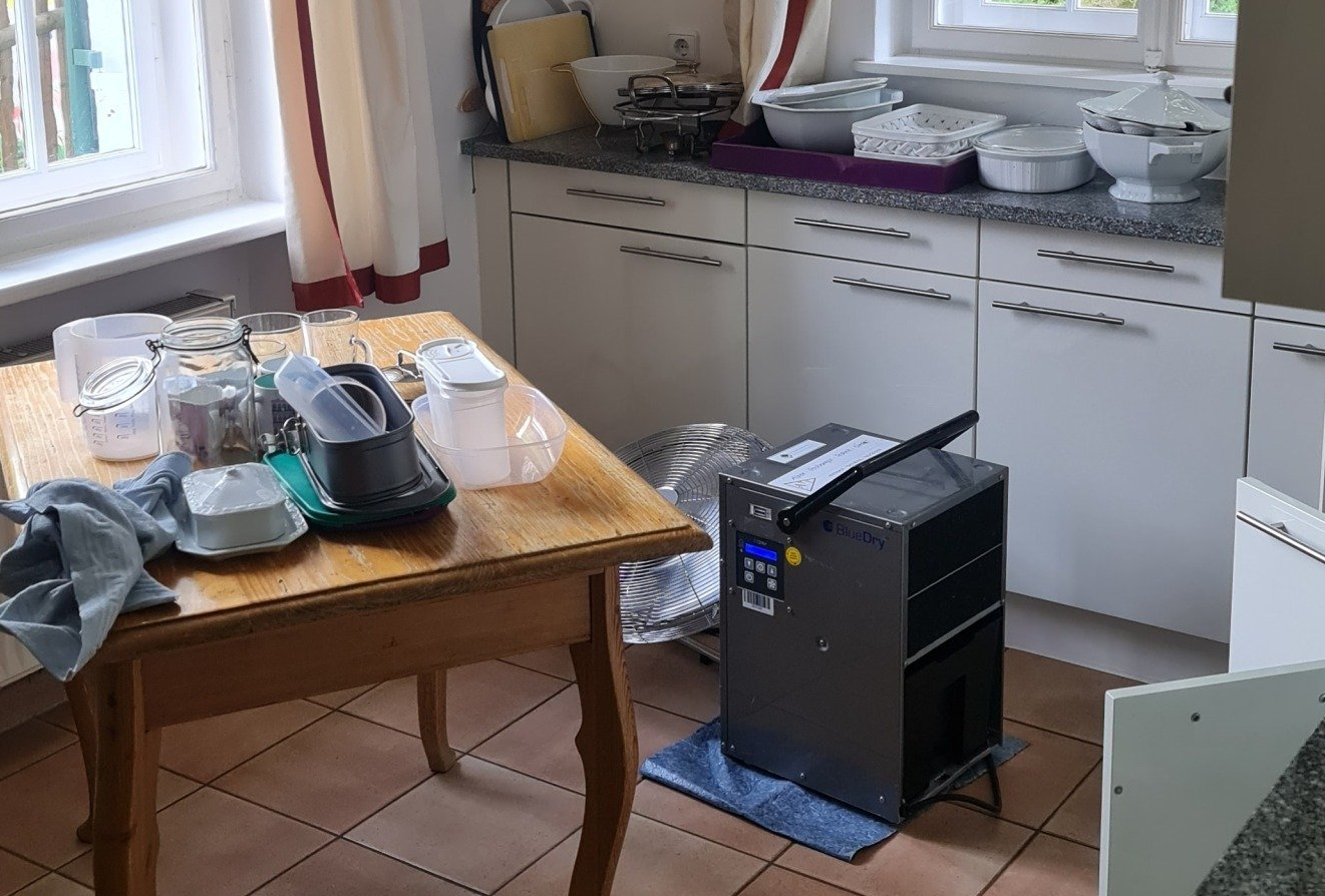 Mit speziellen Luftentfeuchtungssystemen und Ventilatoren wird die Feuchtigkeit in Decken, Wänden und Böden professionell abgesenkt und Schäden vermieden.